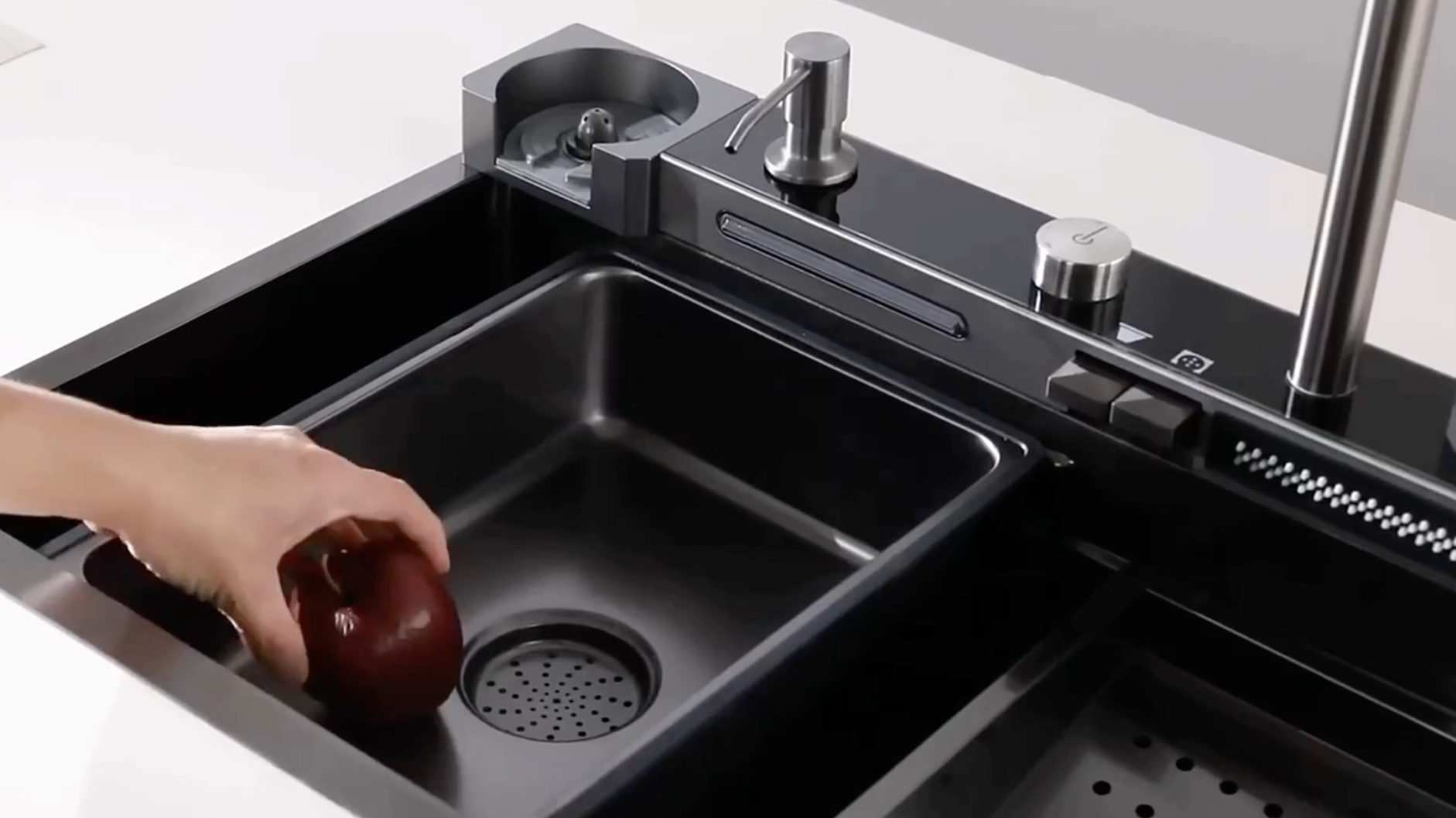 ➢ Conception à double rail:L'évier possède deux rails permettant de faire glisser les accessoires intégrés selon les besoins, offrant plus d'espace et améliorant l'efficacité du travail en cuisine.